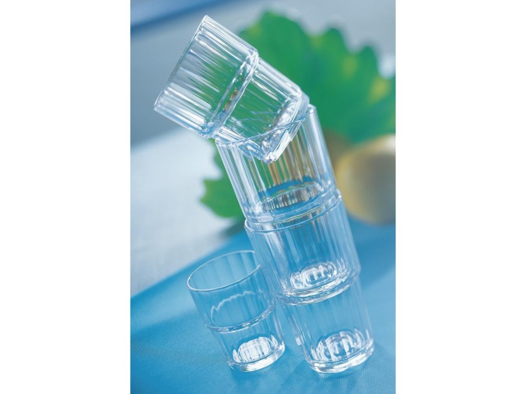 Plne tvrdené, stohovateľné a odolné sklo. Ideálne pre intenzívne používanie. Vhodné do umývačky riadu.
