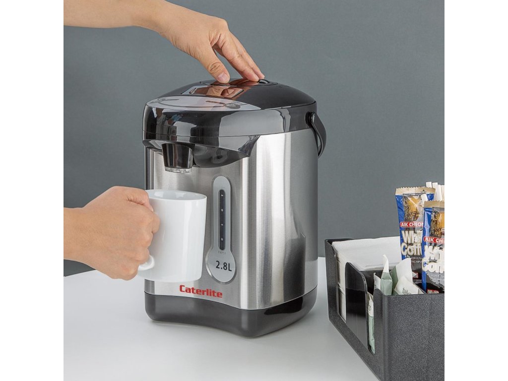 Kompaktný, ľahko použiteľný 2,8 l dávkovač horúcej vody.