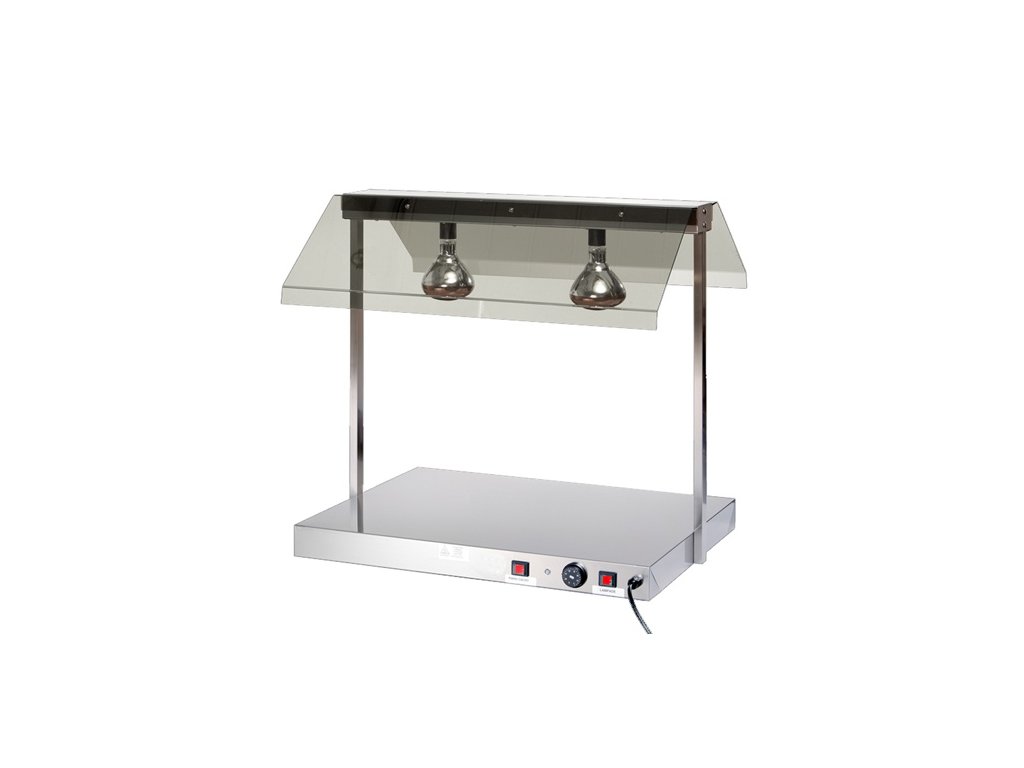 rozmer: 850x640x800mm(šxhxv); príkon elektro: 0,95kW/230V; regulácia teploty: 30-90° C; nerezová ohrevná doska s termostatom; 2 infra lampy; vrchný plastový kryt