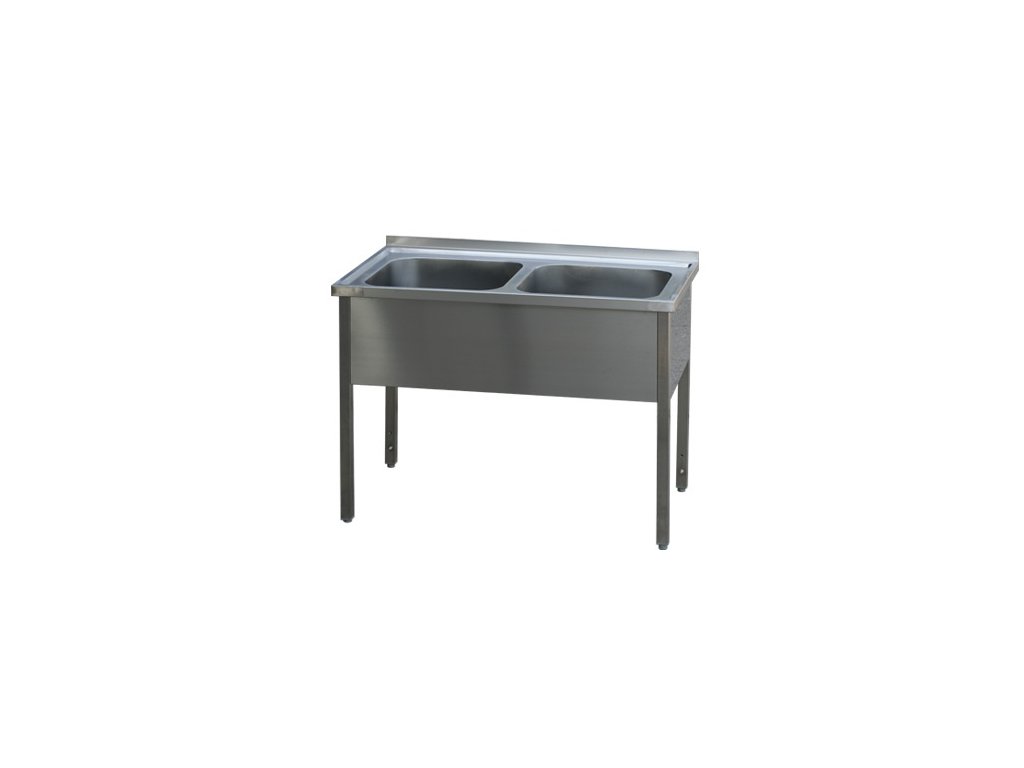 rozmer: 1200x700x900mm(šxhxv); rozmer drezu: 500x500x300mm; 2 x lisovaný drez; výška zadného lemu 40mm