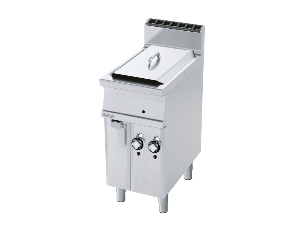 rozmer: 400x700x900mm(šxhxv); príkon plyn: 10kW; počet vaní: 2ks; objem vane: 8 l; rozmer koša: 120x300x150mm(šxhxv); regulácia teploty: 50-180°C; výpusť do podstavby; na podstavbe s dverami; piezo zapaľovanie; hrúbka plechu vrchnej dosky: 2mm; základné príslušenstvo: ; -veko vane; -2 x košDiskusia
