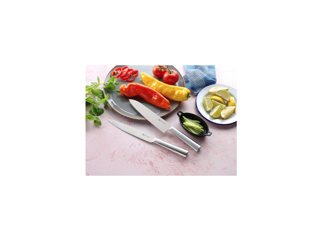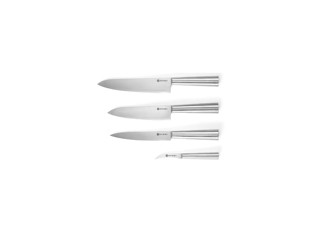 - Sada obsahuje: 1 – nôž šéfkuchára 373 mm, 2 – nôž šéfkuchára 333 mm, 3 – nôž na vyrezávanie 333 mm, 4 – odlepovač 195 mm.