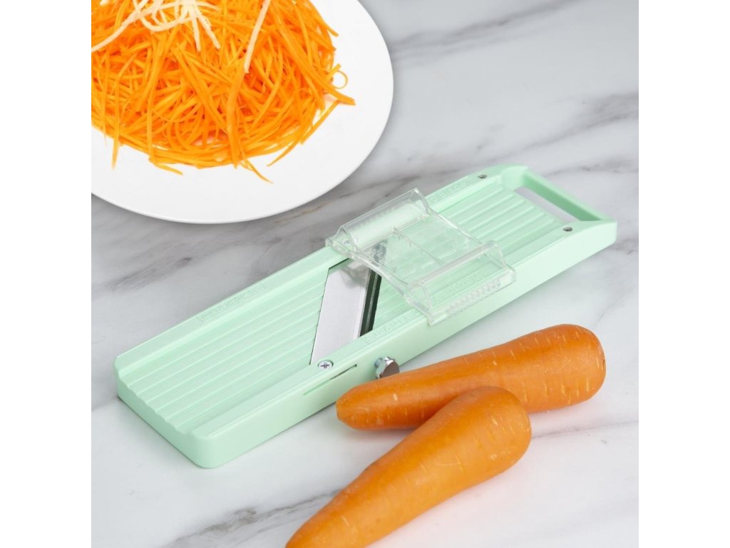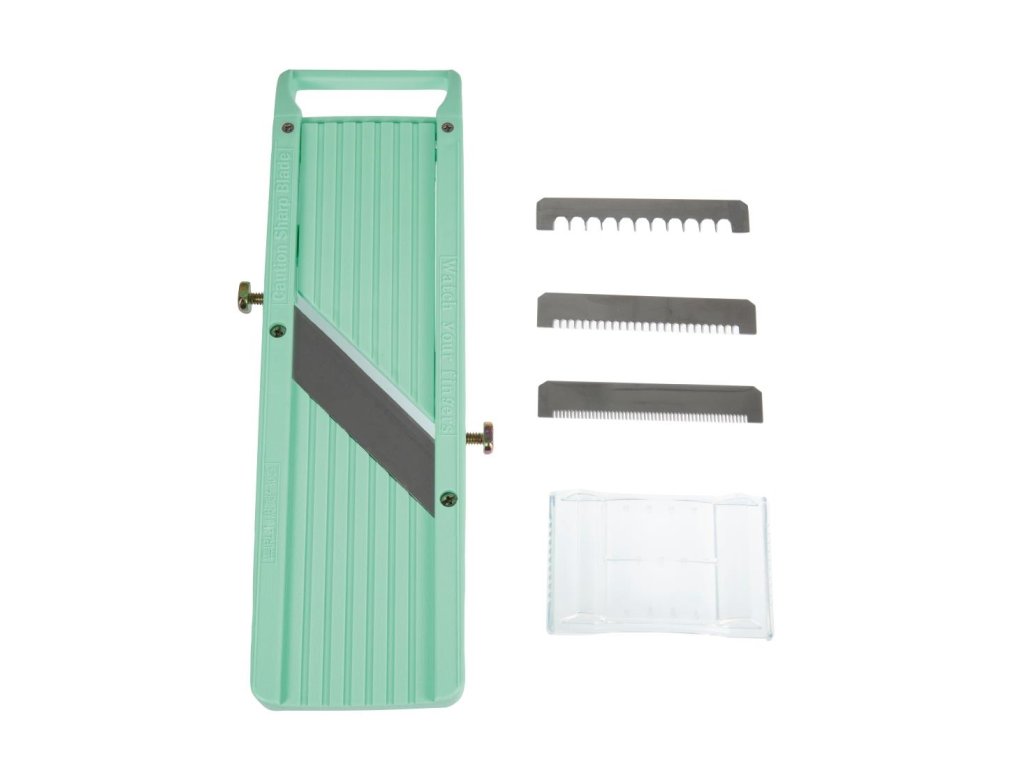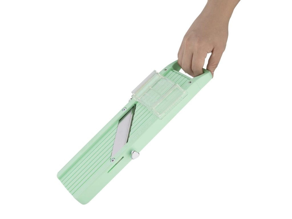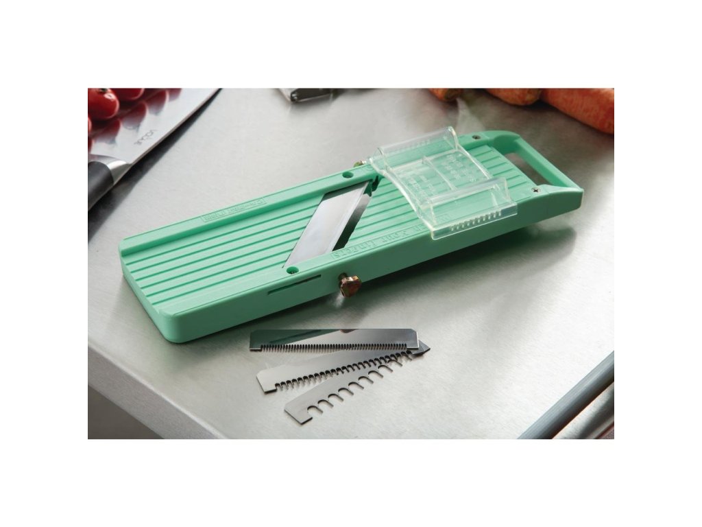 Mandolína s 3 vymeniteľnými čepeľami a ochranou rúk. 31 (v) x 90 (š) x 25 (š) cm.