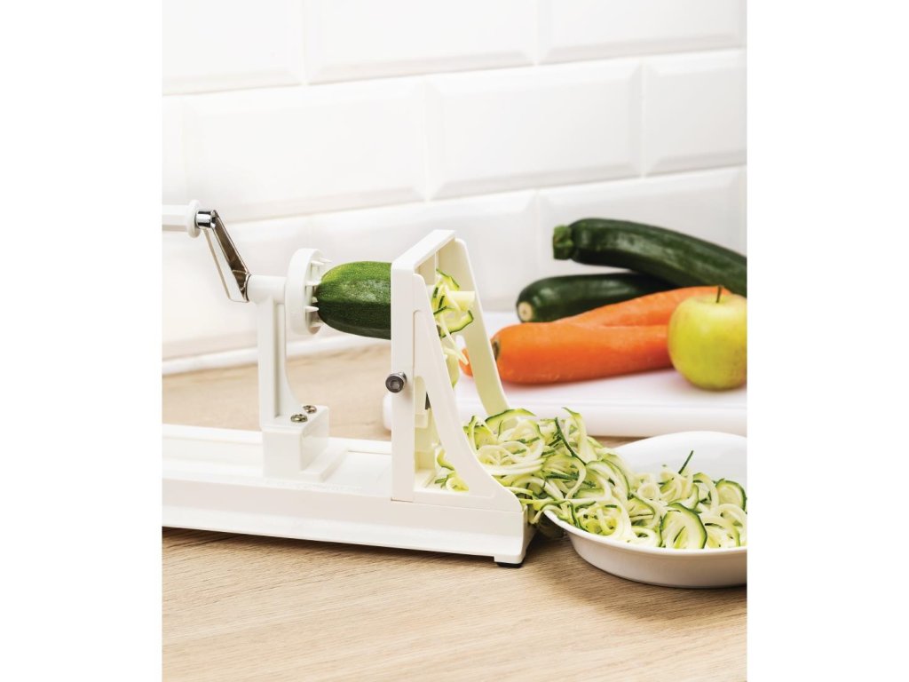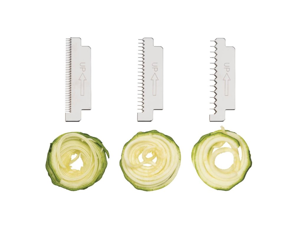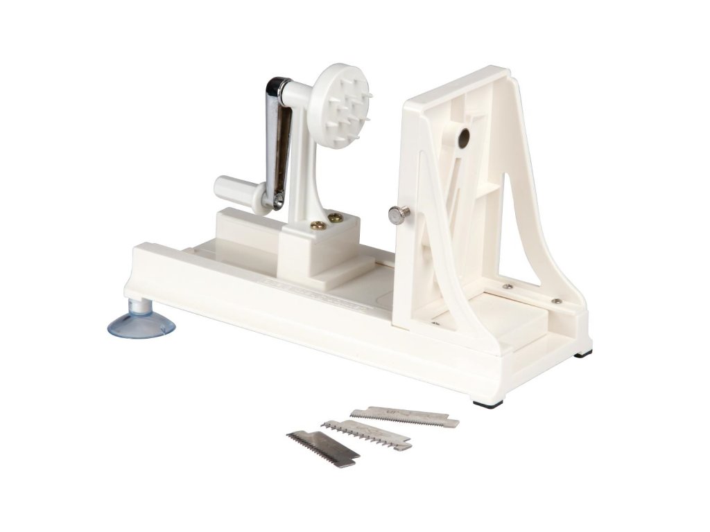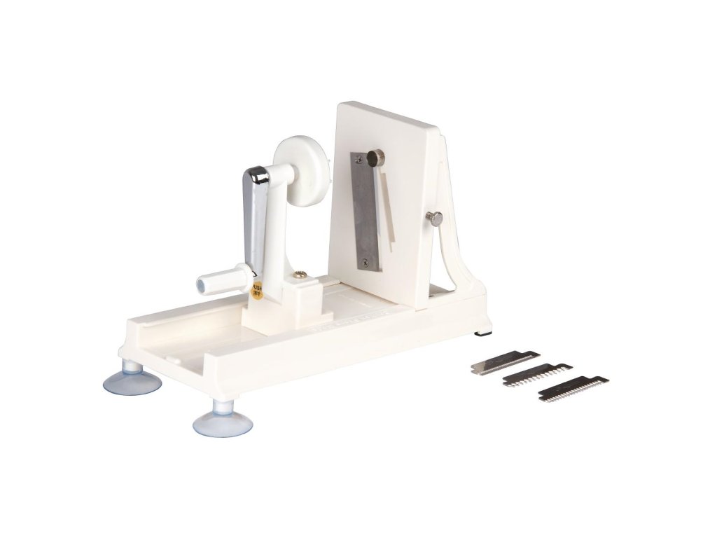ABS plastová konštrukcia, vybavená 4 čepeľami z nerezovej ocele. Reže dlhé špagetové a zeleninové povrázky na 3 rôzne hrúbky.