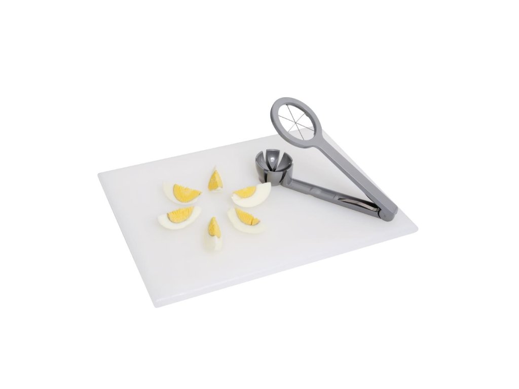 Materiál: nehrdzavejúca oceľ. Vajcia nakrájame na 6 rovnakých kúskov.