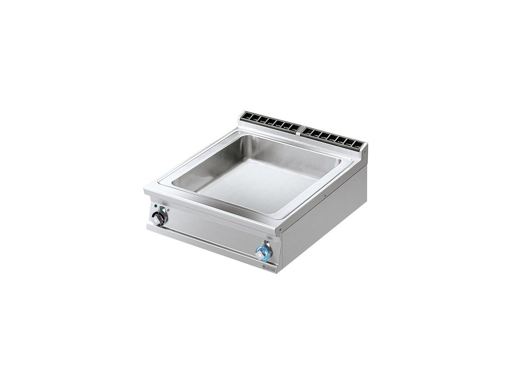 rozmer: 800x900x280mm(šxhxv); príkon elektro: 5,7kW/400V; kapacita: 2 x GN1/1 - 150mm + 2 x GN1/3 - 150mm; regulácia teploty: 30-90°C; výpustný ventil; hrúbka plechu vrchnej dosky: 2mm