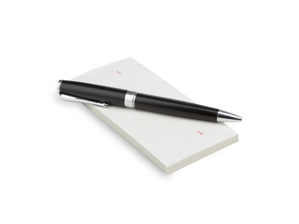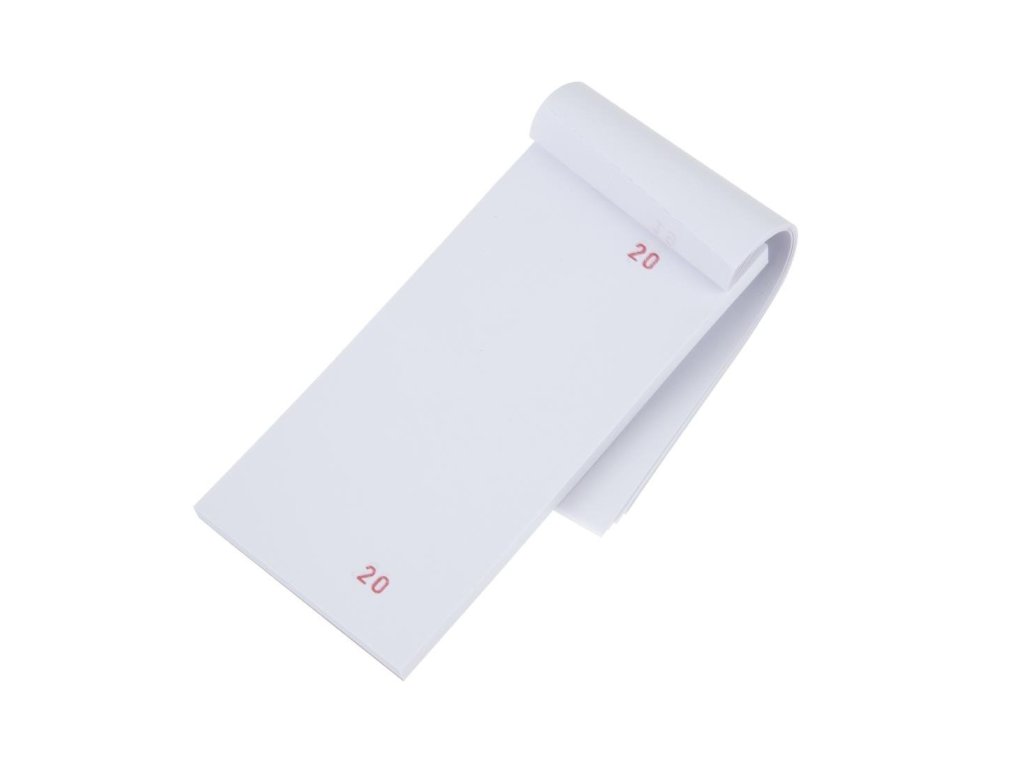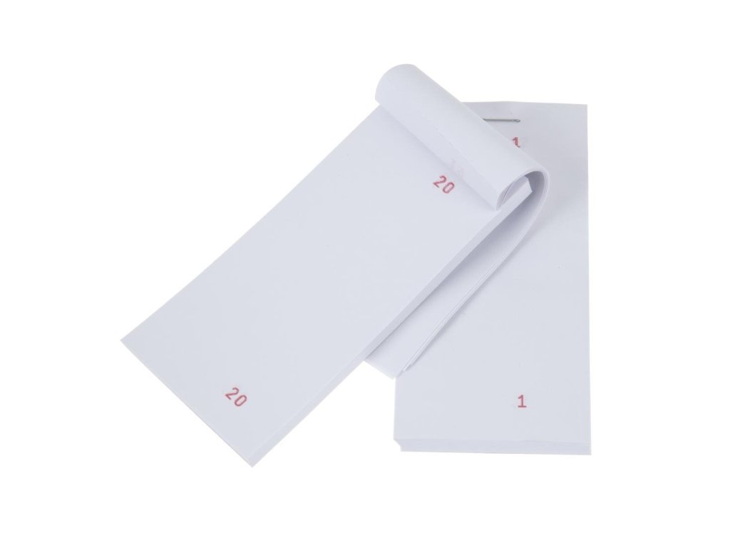 Účtenkovka s očíslovanými účtenkami. Rozmer 6,5 x 12,5 cm.