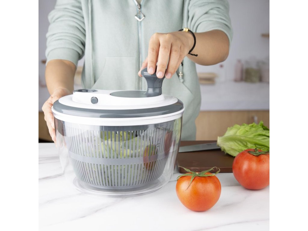 Ušetrite čas s týmto odstredivkou na šalát. Keď sa šalát vysuší, zostane dlhšie čerstvý. Ideálne pre profesionálnu kuchyňu.