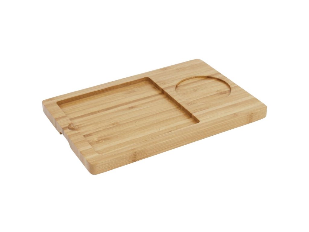Bambusová základňa pre bridlicovú misku (CM062) so 7 cm à priehlbinou na rámy. Ideálne na podávanie malých jedál s omáčkami alebo dipmi na boku.
