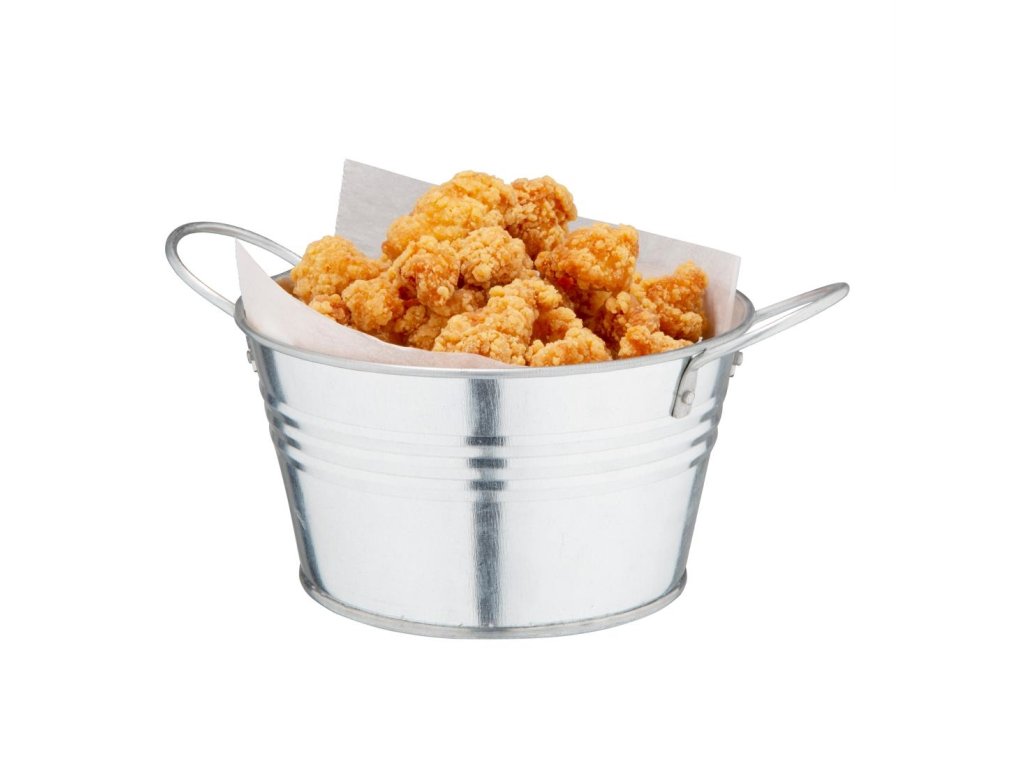 Súčasný moderný spôsob prezentácie hranolčekov, kreviet alebo kuracieho mäsa.