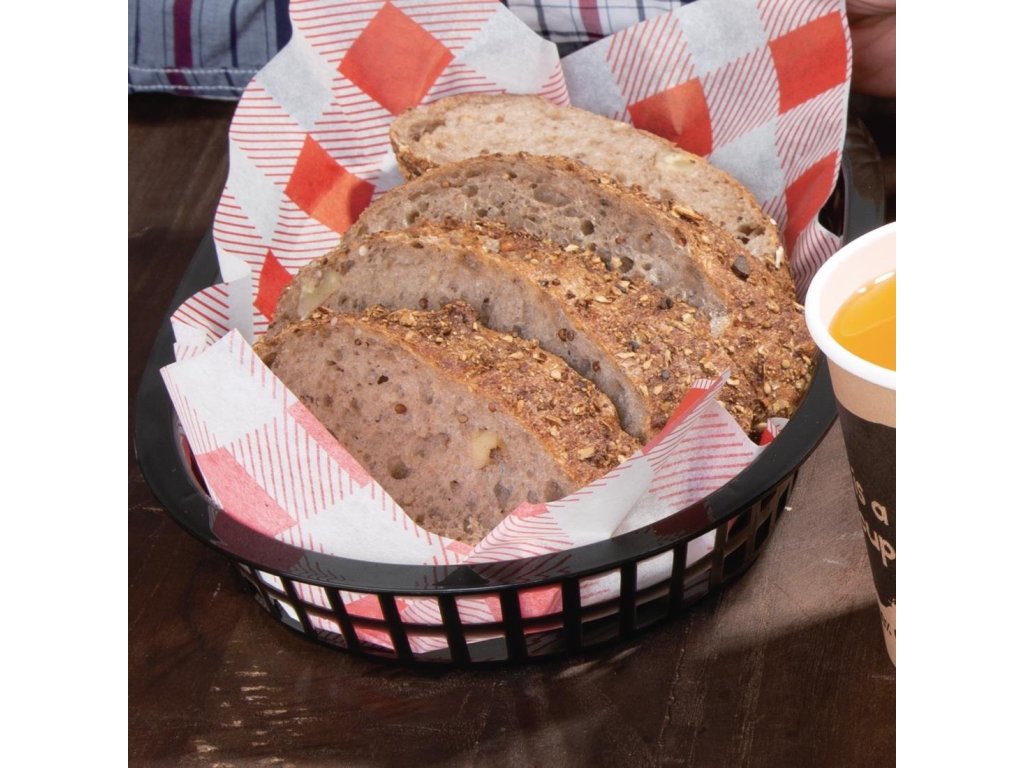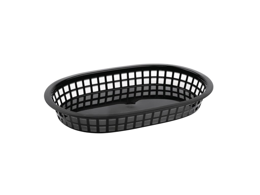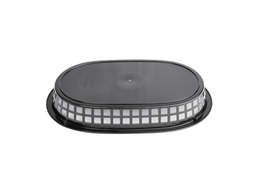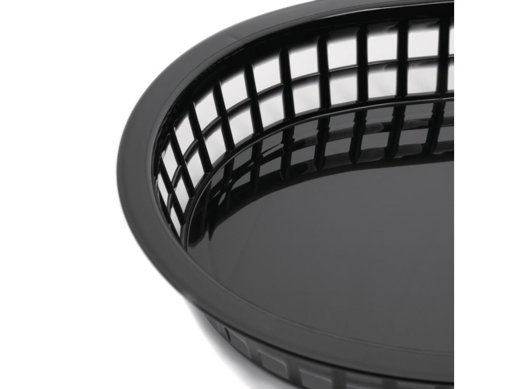 Oválny polypropylénový stolový kôš na servírovanie hranolčekov, hamburgerov, sendvičov a pod. Vhodné do mikrovlnky, mrazničky a umývačky riadu. Rozmery: 4(v)x27,5(š)x17,5(h)cm.
