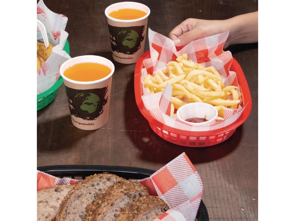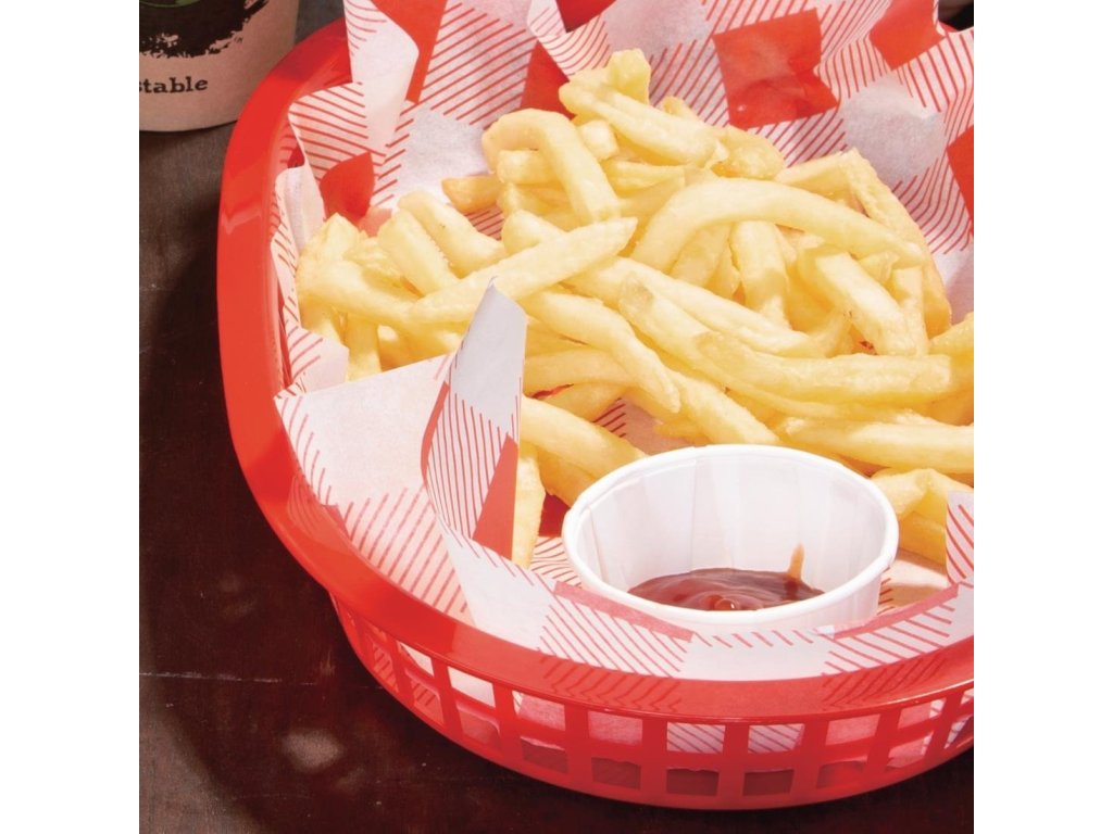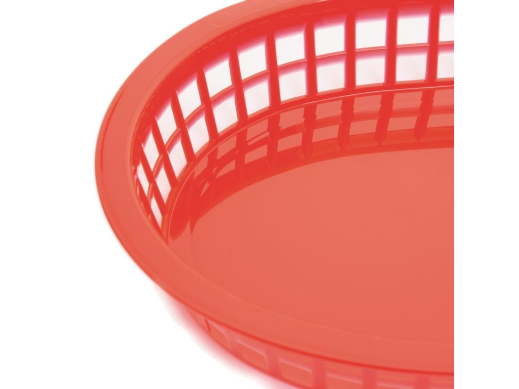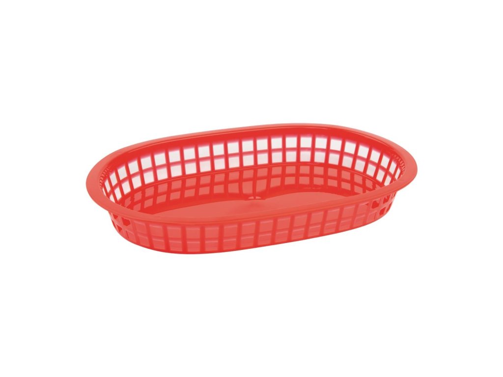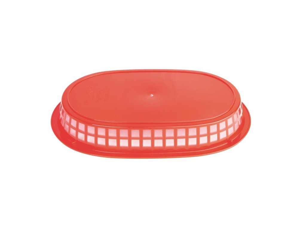 Oválny polypropylénový stolový kôš na servírovanie hranolčekov, hamburgerov, sendvičov a pod. Vhodné do mikrovlnky, mrazničky a umývačky riadu. Rozmery: 4(v)x27,5(š)x17,5(h)cm.