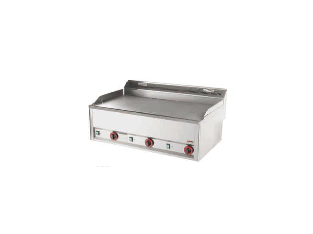 rozmer: 990x600x290mm(šxhxv); príkon elektro: 9kW/400V; rozmer platne: 970x480mm(šxh); platňa: hladká; prevedenie: durable chróm; regulácia teploty: 50-300°C; zásuvka na odkvapkávajúci tuk