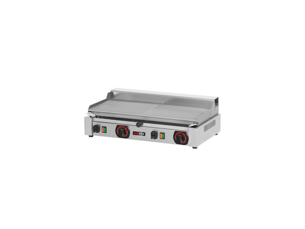 rozmer: 592x322x182mm(šxhxv); príkon elektro: 2,4kW/230V; rozmer platne: 570x240mm(šxh); regulácia teploty: 50-300°C; platňa: 1/2hladká + 1/2 ryhovaná; prevedenie: teplovodivá oceľ; zásuvka na odkvapkávajúci tukDiskusia