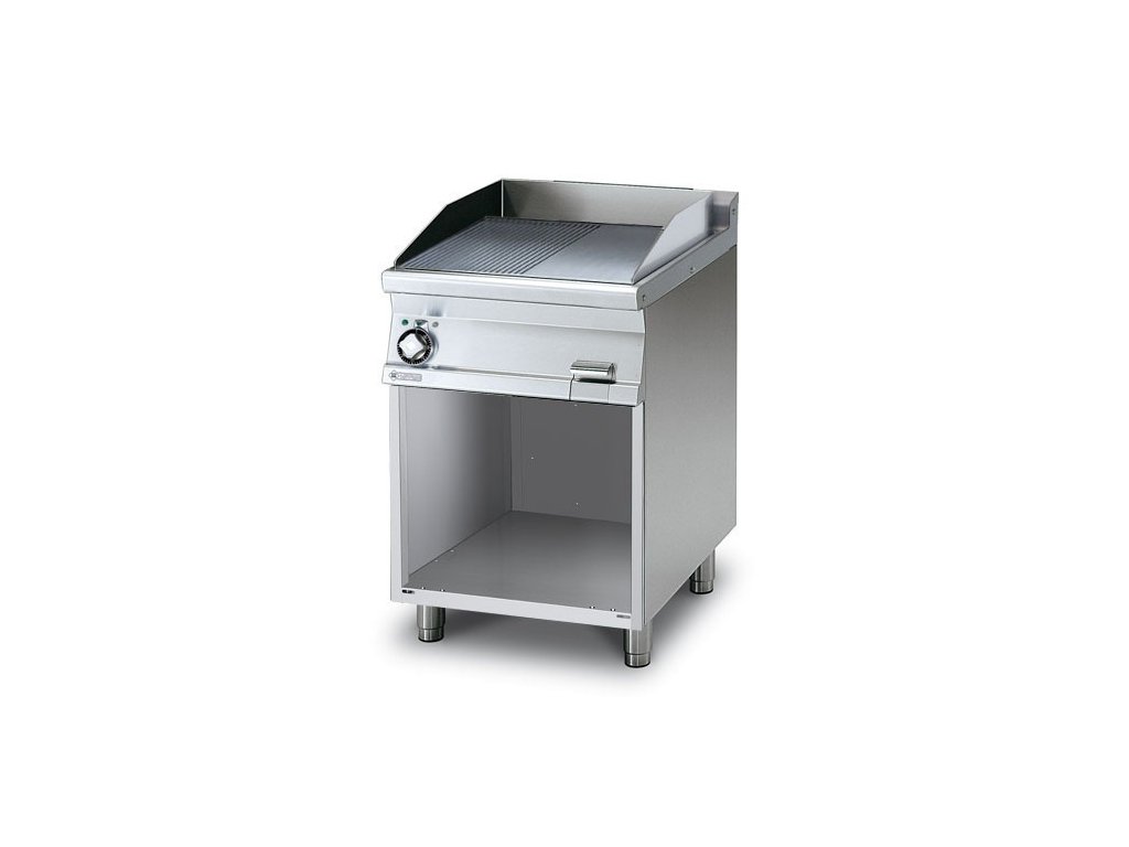 rozmer: 600x700x900mm(šxhxv); príkon elektro: 7,4kW/400V; rozmer platne: 590x520mm(šxh); platňa: 1/2hladká + 1/2ryhovaná; prevedenie: teplovodivá oceľ; regulácia teploty: 50-300°C; na otvorenej podstavbe; zásuvka na odkvapkávajúci tuk; hrúbka plechu vrchnej dosky: 2mm; príslušenstvo na objednávku: ; -dvereDiskusia
