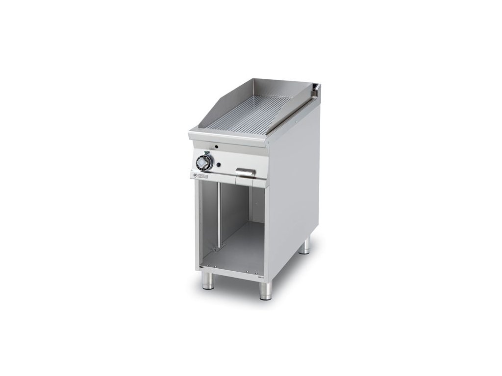 rozmer: 400x900x900mm(šxhxv); príkon plyn: 9kW; rozmer platne: 360x680mm(šxh); platňa: ryhovaná; prevedenie: brúsený chróm; regulácia teploty: 50-300°C; na otvorenej podstavbe; zásuvka na odkvapkávajúci tuk; piezo zapaľovanie; hrúbka plechu vrchnej dosky: 2mm; príslušenstvo na objednávku: ; -dvereDiskusia