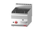 Gril z lávových kameňov s liatinovým grilom, piezo zapaľovaním, nerezovými horákmi, miskou na vodu a termočlánkom. Doplnené lávovými kameňmi.