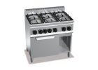 Plynový sporák s 5 horákmi. Vybavený termočlánkom a piezo zapaľovaním. Štandardná verzia na zemný plyn. Súprava na prestavbu je súčasťou dodávky pre inštalatéra pre rôzne tlaky...