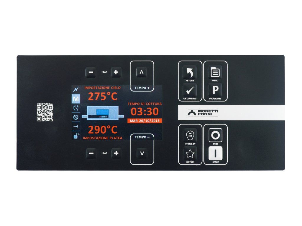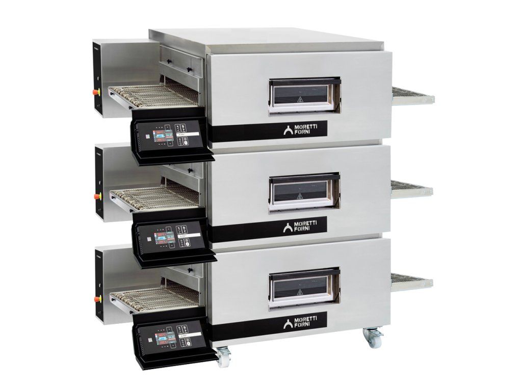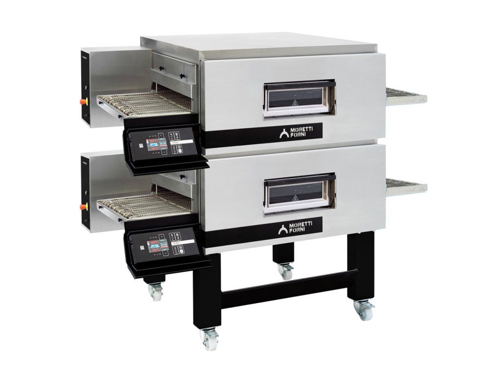 Nastaviteľná rýchlosť pásu, 100 pamäťových programov, nezávislé nastavenie teploty hornej a spodnej časti komory. Hodinový výkon pizz priemeru 33 cm je 48 ks.