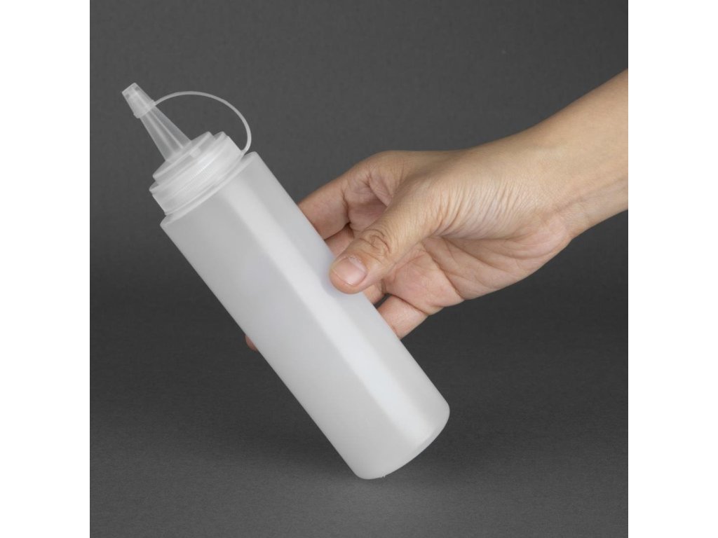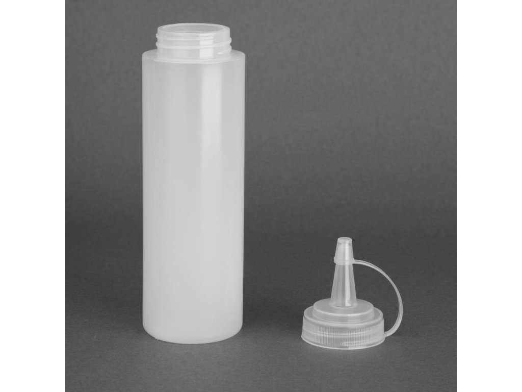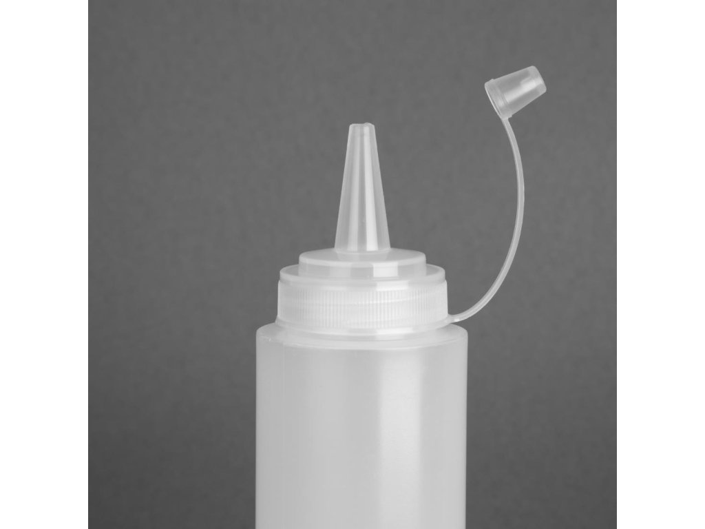 Flexibilný, mäkký polyetylén so skrutkovacím uzáverom a širokým hrdlom pre ľahké plnenie. Ideálne na zdobenie alebo dávkovanie omáčky. Skráťte samotnú trysku na požadovanú veľkosť.