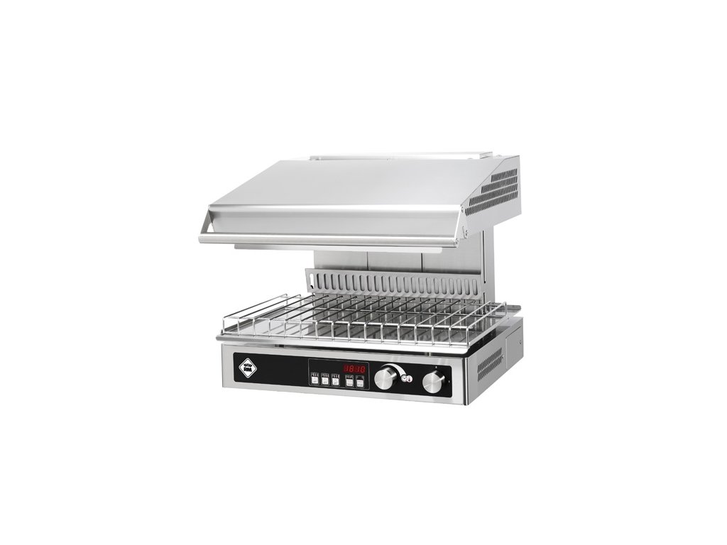 rozmer: 570x580x520mm(šxhxv); príkon elektro: 4,5kW/400V; rozmer roštu: 560x360mm; polohovatelné výhrevné telesá; 3 výhrevné regulovateľné zóny; 7 variánt náhrevu; max. pracovná teplota 230°C; nástup teploty 200°C za 8 sekúnd; ohrevné telesá chránené difúznym sklom pre jednoduché čistenie; automatická regulácia teploty; možnosť montáže na stenu (držiak v cene); ovládací panel s LED displejom; veľkosť GN 1/1; automatické vypnutie po skončení cyklu s akustickým signálom skončenia; detektor jedla - automatické zap./vyp. telies pri kontakte so zadnou lištou; funkcia HOLD udržiavania pri teplote 40-70°C, 8 stupňová; možnosť zapnutia iba vybranej časti teliesDiskusia