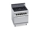 Sklokeramická varná doska so 4 varnými zónami a elektrickou rúrou GN 2/1 s termostatom a kontrolkami. Vnútorné rozmery rúry: 85 (v) x 80 (š) x 70 (h) cm.