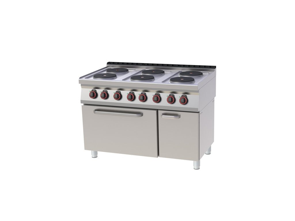 Sporák el. s rúrou a skrinkou, 6xplatňa, 1200/700 SPT-70/120-21E