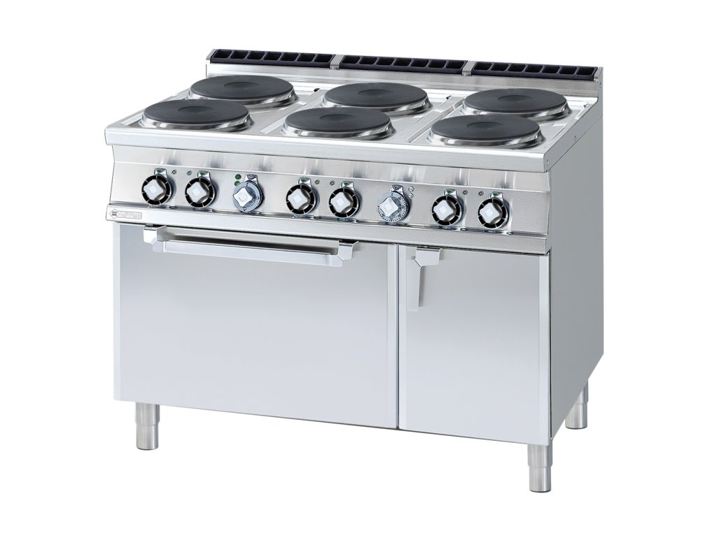 Sporák el. s rúrou a skrinkou, 6xplatňa, 1200/900 CF6-912ETV