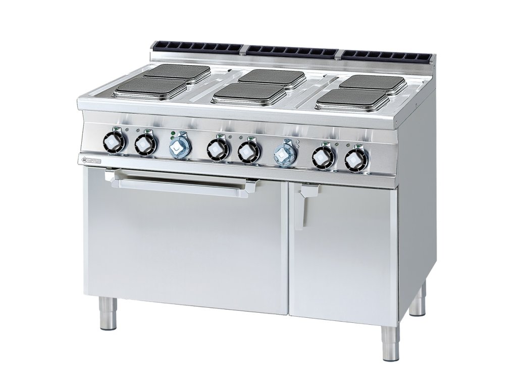 Sporák el. s rúrou a skrinkou, 6xštvorcová platňa, 1200/700 CFQ6-712ETV