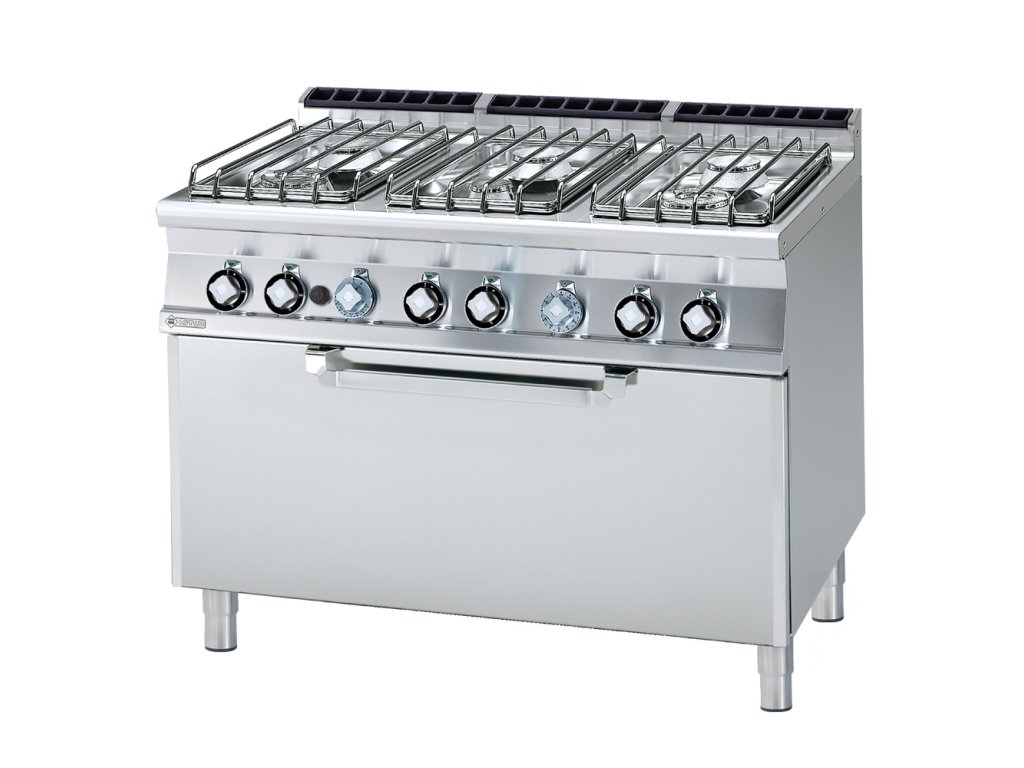 rozmer: 1200x700x900mm(šxhxv); príkon elektro: 6,9kW/400V; príkon plyn: 35kW; plynový príkon horákov: 1x3,5kW + 3x5,5kW + 2x7,5kW; počet horákov: 6ks; elektrický príkon rúry: 6,9kW; vnútorný rozmer rúry: 1080x550x340mm(šxhxv)/3xGN1/1; regulácia teploty rúry: 50-300°C; prevedenie rúry: statická; zapaľovanie pilotným plameňom; nerezové misky a rošty horákov; hrúbka plechu vrchnej dosky: 2mm; základné príslušenstvo: ; -rošt rúryDiskusia