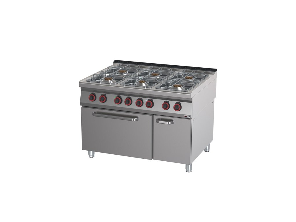rozmer: 1200x900x900mm(šxhxv); príkon plyn: 40,5kW; príkon elektro : 6,3kW/400V; plynový príkon horákov: 1x3,5kW + 1x5kW + 4x8kW; počet horákov: 6ks; elektrický príkon rúry: 6kW; vnútorný rozmer rúry: 558x682x348mm(šxhxv)/GN2/1; regulácia teploty rúry: 50-300°C; prevedenie rúry: statická; zapaľovanie pilotným plameňom; nerezové rošty horákov; základné príslušenstvo: ; -rošt rúry GN2/1Diskusia