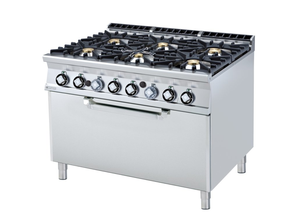 rozmer: 1200x900x900mm(šxhxv); príkon plyn: 58,5kW; plynový príkon horákov: 1x4kW + 3x7kW + 2x10kW; počet horákov: 6ks; plynový príkon rúry: 13,5kW; vnútorný rozmer rúry: 1070x730x340mm(šxhxv)/3 x GN 1/1; regulácia teploty rúry: 50-300°C; prevedenie rúry: statická; zapaľovanie: horáky-pilotný plameň / rúra-piezo; liatinové rošty horákov; hrúbka plechu vrchnej dosky: 2mm; základné príslušenstvo: ; -rošt rúry 1050x710mm(šxh)Diskusia