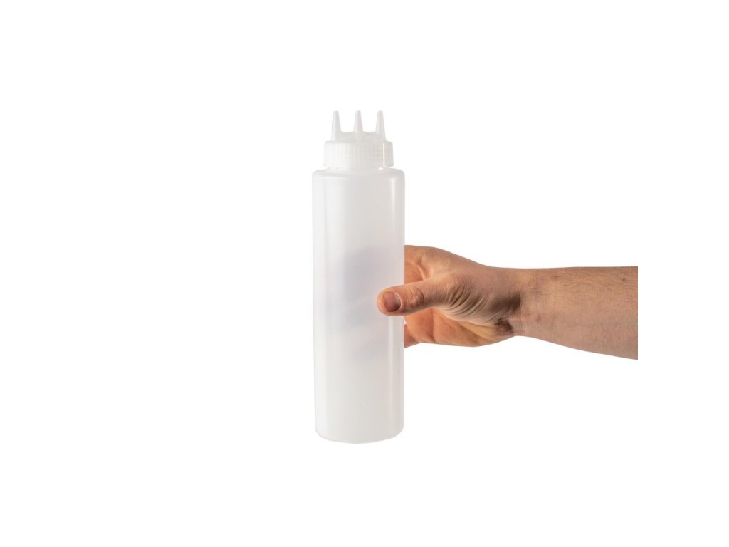 Priehľadné, pevné stláčacie fľaše s 3 dýzami. Jednoduché a rýchle použitie.
