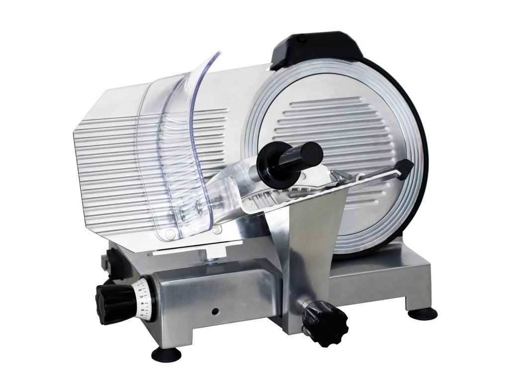 rozmer: 410x550x420mm(šxhxv); príkon elektro: 0,20kW/230V; prevod: remeňový; priemer noža: 300mm/hladký; hrúbka rezu: 0-14mm; max. priemer rezu: 255mm; rezný stôl uložený šikmo; tlakový odliatok z hliníkovej zliatiny; brúsne zariadenie; nie je vhodný na krájanie syrovDiskusia
