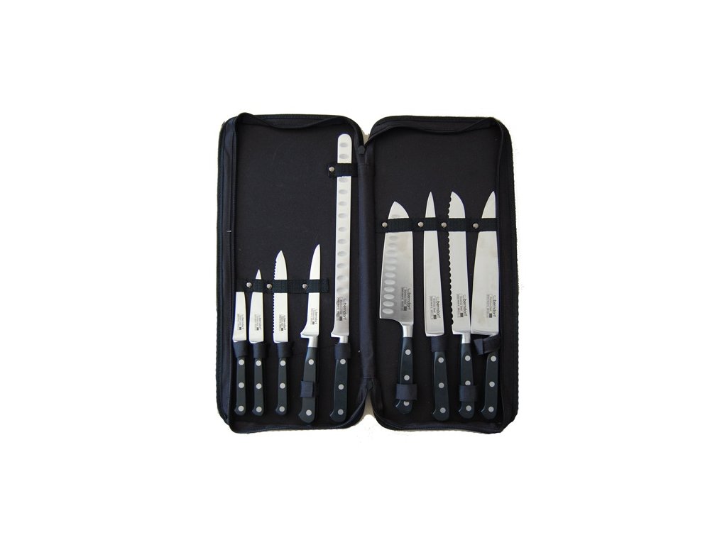 nôž na ovocie 7,5cm ; nôž na zeleninu 10cm; nôž úžitkový 11,5cm; nôž vykosťovací 11,5cm; nôž na lososa 28cm; nôž santoku 16,5cm; nôž na mäso 20cm; nôž na chlieb19cm; nôž univerzálny 20cm