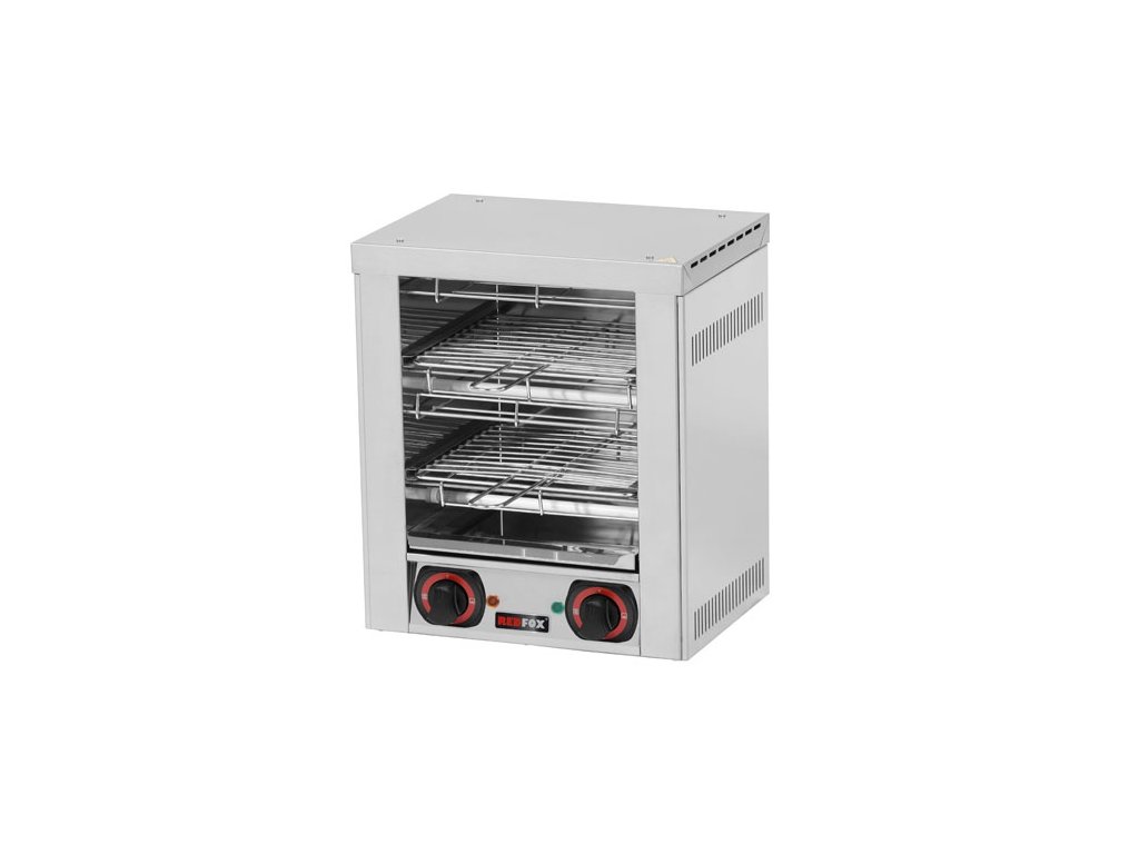 rozmer: 350x250x400mm(šxhxv); príkon elektro: 2,4kW/230V ; počet poschodí: 2; počet klieští: 4ks; časovač 1-15min + nekonečno; záchytná miska na strúhanku; odnímateľná zadná stena