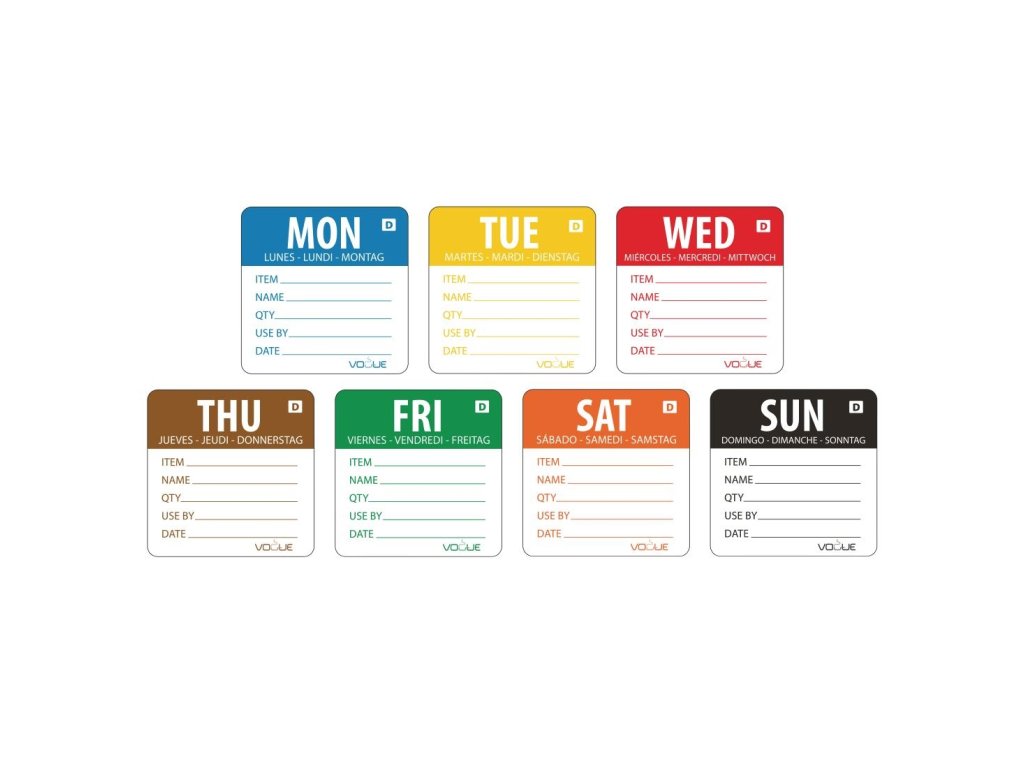 Týždenná sada rozpustných etikiet na potraviny s farebným kódom Vogue (1750 kusov)