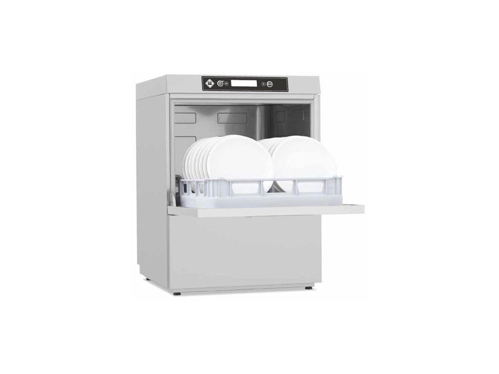 rozmer: 600x600x820mm(šxhxv); príkon elektro: 7,9kW/400V; kapacita: 60/40/20 košov/h; cyklus: 60", 90", 180"; rozmer koša: 500x500mm(šxh); maximálna vstupná výška: 385mm; prevedenie: dvojplášťová; spotreba vody: 2,2 l/cyklus; bojler: atmosferický s oplachovým čerpadlom; horné a dolné rotačné umývacie a oplachové nerezové ramená; elektronické ovládanie; zobrazenie umývacích a oplachových teplot na displeji; zobrazenie priebehu umývania a statusov na displeji; počítadlo umývacich cyklov; autodiagnostický systém detekcie závad s chybovým hlásením; oplachové čerpadlo pre garantovaný tlak oplachu; termostop pre garantovanú teplotu oplachu podľa HACCP; softštart pre plynulý nábeh tlaku vody z umývacích ramien; autoštart cyklu po zatvorení dverí; samočistiaci program; energy saving mód pre úsporu energie v dobe nepoužívaní umývačky; nerezové filtre nečistot vo vani; 9 ďalších špecifických programov; nastavenie dávkovačov cez ovládací panel; základné príslušenstvo:; -koš na taniere; -koš na poháre; -kontajner na príbory; -dávkovač umývacieho prostriedku; -dávkovač oplachového prostriedku; -odpadové čerpadlo; -umývací prostriedok 12kg; -oplachový prostriedok 10kg; príslušenstvo na objednávku: ; -koše podľa výberuDiskusia