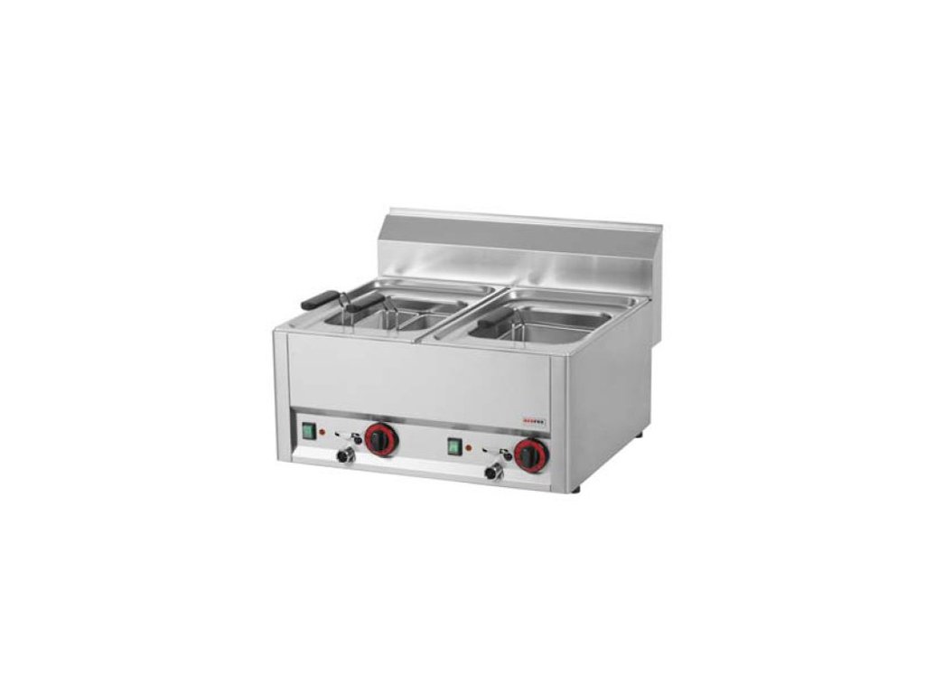 rozmer: 660x600x290mm(šxhxv); príkon elektro: 6kW/400V; počet vaní: 2ks; objem vane: 2x12,5 l; rozmer vane: 2 x GN1/2 - 150mm; regulácia teploty: 30-100°C; výpustný ventil; príslušenstvo na objednávku: ; -koš 1/1 408008000; -koš 1/2 408008001; -koš 1/4 408001110Diskusia