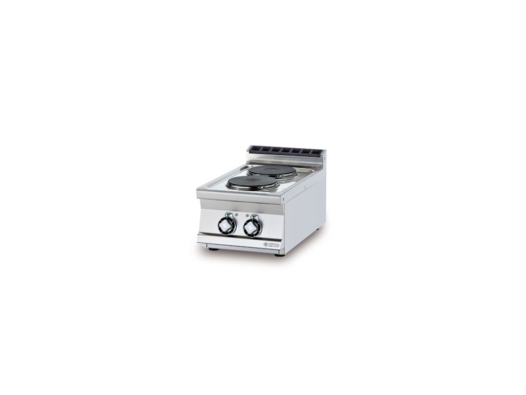 rozmer: 400x700x280mm(šxhxv); príkon elektro: 5,2kW/400V; elektrický príkon platní: 2x2,6kW; počet platní: 2ks; priemer platne: 220mm; hrúbka plechu vrchnej dosky: 2mm