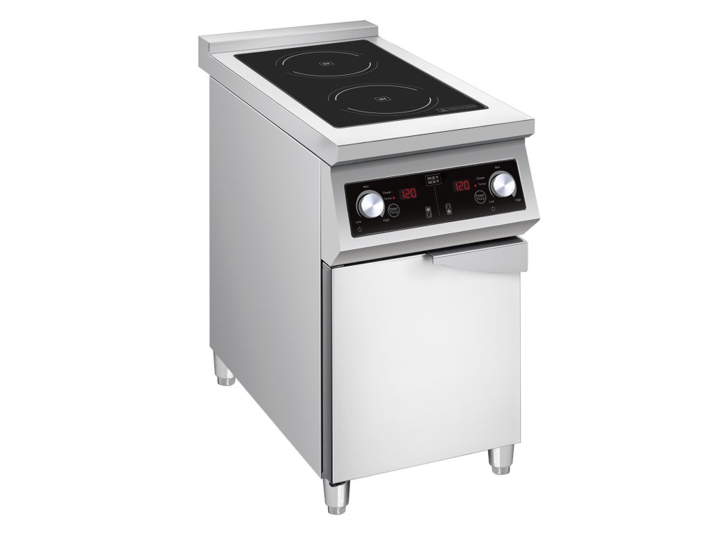 rozmer: 400x700x860mm(šxhxv); príkon elektro: 10kW/400V; elektrický príkon varných zón: 2x5kW; počet varných zón: 2ks; priemer varnej zóny: 320mm; na podstavbe s dverami