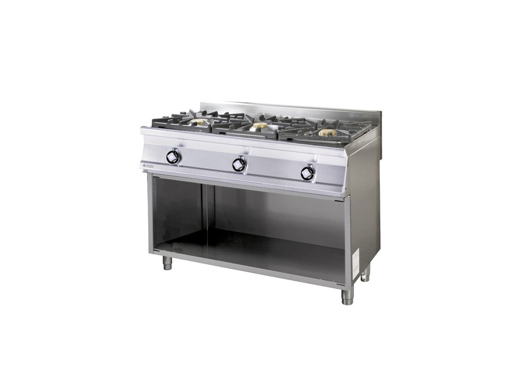 rozmer: 1200x600x900mm(šxhxv); príkon plyn: 27kW; plynový príkon horákov: 2x10kW + 1x7kW; počet horákov: 3ks; na otvorenej podstavbe; príslušenstvo na objednávku: ; -dvere; -WOK nádstavec