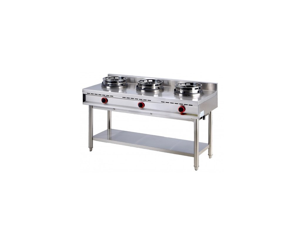rozmer: 1500x600x800mm(šxhxv); príkon plyn: 30kW; plynový príkon horákov: 3x10kW; počet horákov: 3ks; vrátane WOK nádstavcov; zapaľovanie pilotným plameňom