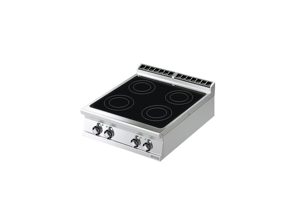 rozmer: 800x900x280mm(šxhxv); príkon elektro: 13,6kW/400V; elektrický príkon varných zón: 4x3,4kW; počet varných zón: 4ks; priemer varnej zóny: 300mm; hrúbka plechu vrchnej dosky: 2mm
