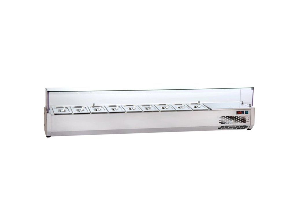 rozmer: 2150x329x457mm(šxhxv); príkon elektro: 0,26kW/230V; kapacita: 10 x GN1/4 - 150mm; chladenie: statické; chladiaci agregát vpravo; prev. teplota: +3/+5°C; elektronická riadiaca jednotka; sklenený zákryt; príslušenstvo na objednávku:; -gastronádobyDiskusia