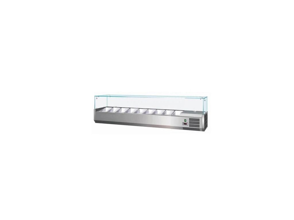 rozmer: 1800x335x440mm(šxhxv); príkon elektro: 0,18kW/230V; kapacita: 9 x GN1/4 - 150mm; chladenie: statické; chladiaci agregát vpravo; prev. teplota: +2/+8°C; elektronická riadiaca jednotka; sklenený zákryt; príslušenstvo na objednávku:; -gastronádobyDiskusia