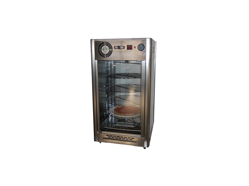 rozmer: 470x470x870mm(šxhxv); príkon elektro: 1,2kW/230V; objem: 108 l; počet políc: 4ks; prevedenie police: otočné roštové; regulácia teploty: 30-90°C; zvlhčovanie z nádoby; osvetlenie LED