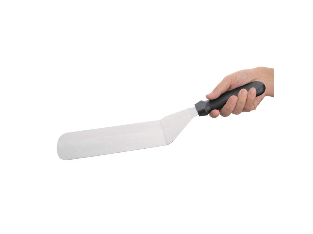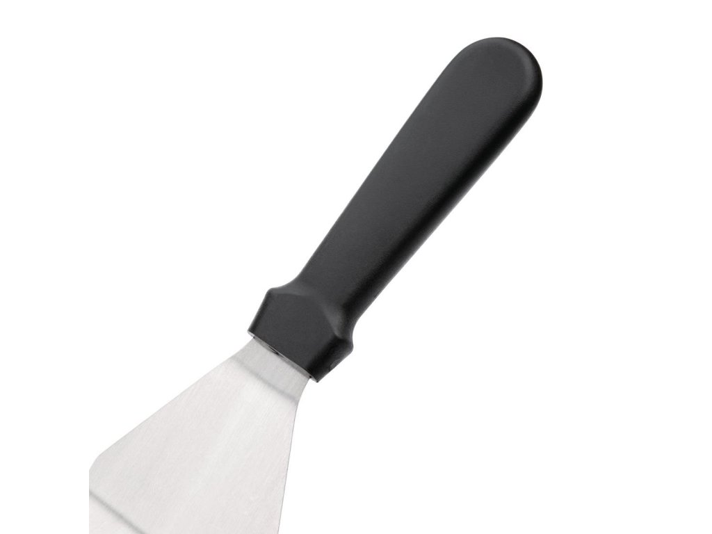 Plastová rukoväť a flexibilná čepeľ z nehrdzavejúcej ocele.