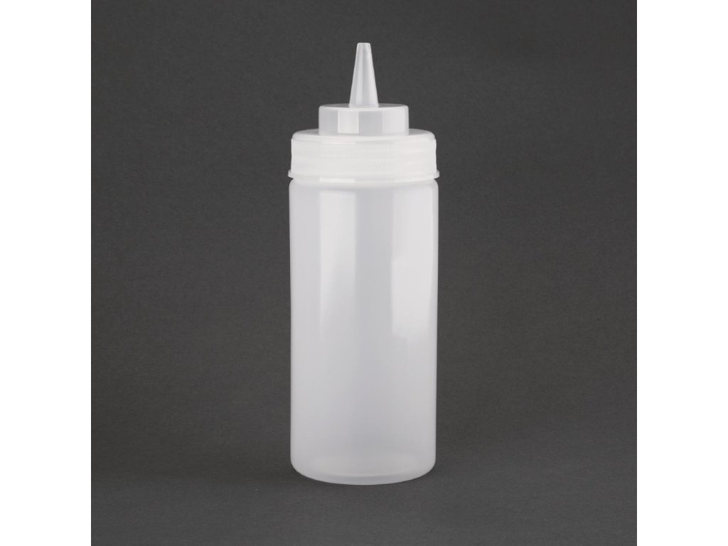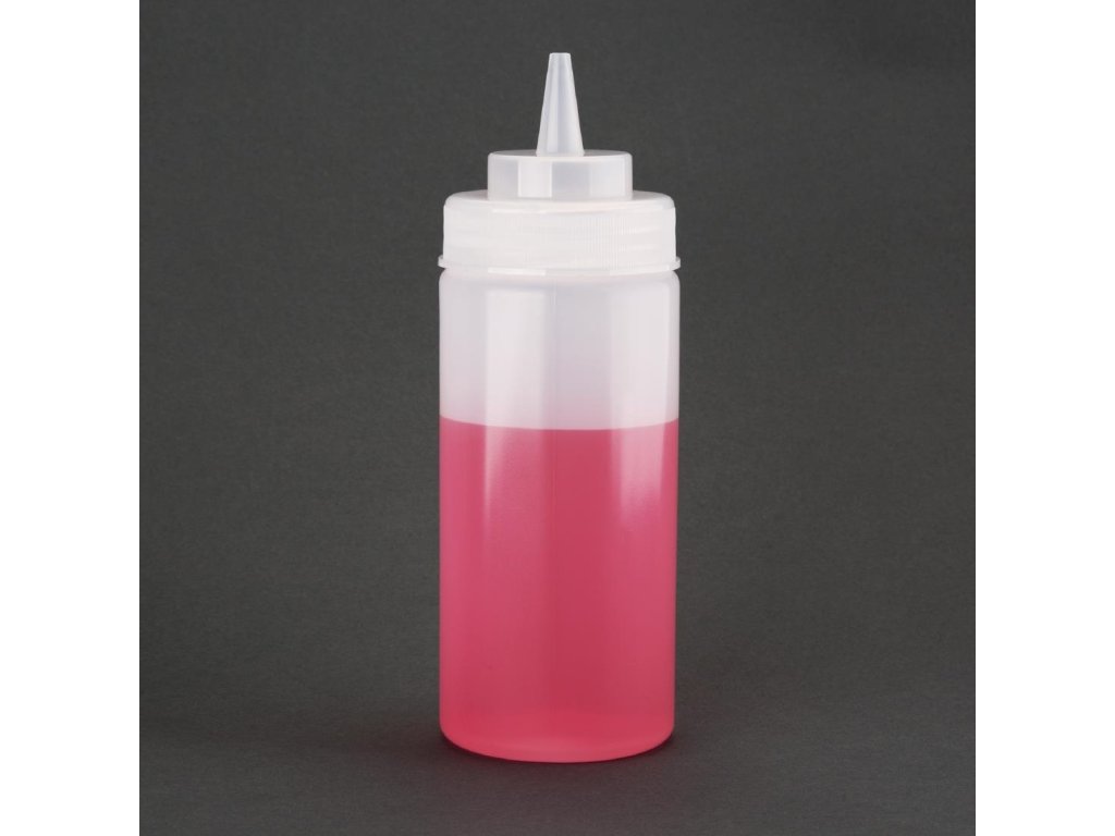 Flexibilný, mäkký polyetylén so skrutkovacím uzáverom a širokým hrdlom pre ľahké plnenie. Ideálne na zdobenie alebo dávkovanie omáčky. Skráťte samotnú trysku na požadovanú veľkosť.