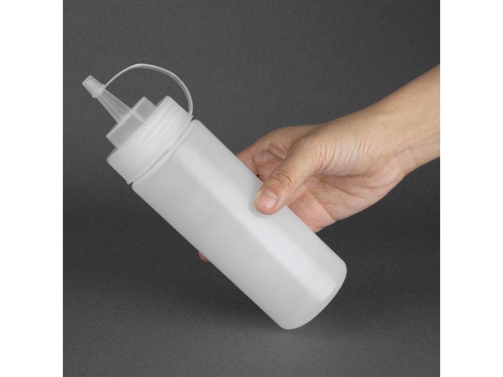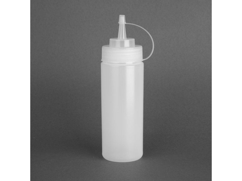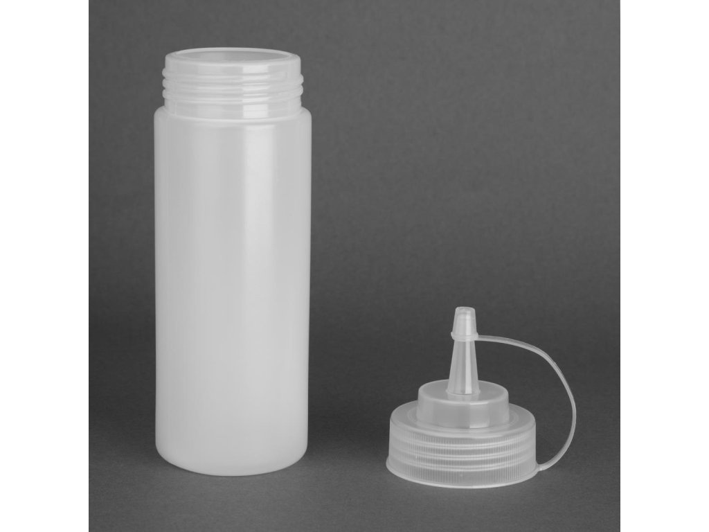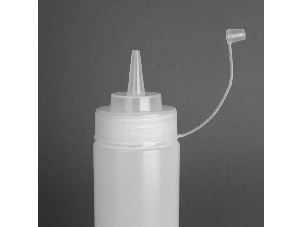 Flexibilný, mäkký polyetylén so skrutkovacím uzáverom a širokým hrdlom pre ľahké plnenie. Ideálne na zdobenie alebo dávkovanie omáčky. Skráťte samotnú trysku na požadovanú veľkosť.